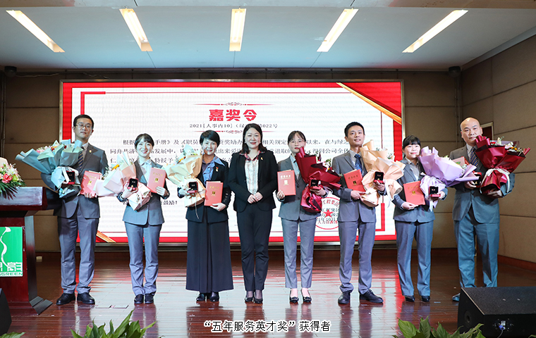 精美獎章,芳華沉香,每個獎章后面,都有一位可愛拼搏的綠之韻人。本次大會集中頒發(fā)了“員工培訓成果獎”“五年服務英才獎”“十年服務忠誠獎”等獎項。梁淑琳、楊蔚、羅瓊蕾、余穎、彭芳、劉博、李思、李星麗榮獲“員工培訓成果獎”,綠之韻集團執(zhí)行總經理夏運良為獲獎員工頒發(fā)證書。今年是中國共產黨建黨100周年,集團黨委積極開展黨史學習教育,不斷夯實黨員隊伍,黨建工作也獲得了省市園區(qū)各級領導的肯定與嘉獎。會議宣讀了今年以來獲得湖南省、長沙市、瀏陽經開區(qū)黨工委優(yōu)秀表彰的先進集體和黨員名單:綠之韻集團黨委榮獲“長沙市標桿引領先進基層黨組織”,集團二支部榮獲“瀏陽經開區(qū)優(yōu)秀支部”,黨委書記劉云榮獲“湖南省優(yōu)秀黨務工作者”,黨員楊丹榮獲“瀏陽經開區(qū)優(yōu)秀黨務工作者”,黨員梅其慧、肖波榮獲“瀏陽經開區(qū)優(yōu)秀黨員”。綠之韻集團副總裁胡均安為獲獎集體及個人頒獎。劉云、靳威、周芳、張艷琴、沈立晟、李克戰(zhàn)、劉偉榮膺“五年服務英才獎”,陳建輝榮膺“十年服務忠誠獎”,綠之韻集團董事總裁勞嘉為獲獎員工頒發(fā)獎章與榮譽證書,并致以熱烈祝賀。“五年服務英才獎”代表周芳和“十年服務忠誠獎”代表陳建輝分別發(fā)表獲獎感言。