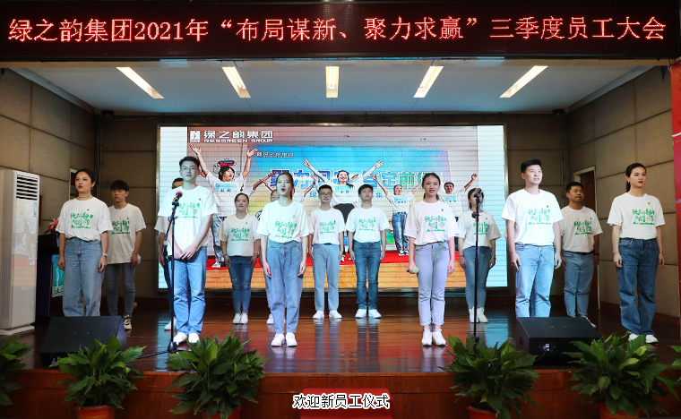 大會以“布局謀新 聚力求贏”為主題,在全體員工宣讀《綠之韻工作宣言》的誦讀聲中拉開序幕。喜迎新員工,再添新力量,為集團未來發(fā)展帶來新的朝氣與活力。會上首先為朱亞喬、覃春曉、劉春延、文利明、劉亮亮、湯思碩、頡海、余穎、羅溪、于蕓蕓、雷運龍、謝鋒、袁永、陳姿媛、馮利、張奇?zhèn)サ刃聠T工舉行了隆重的歡迎儀式。