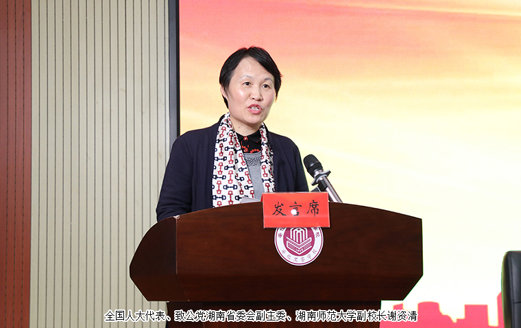 活動(dòng)最后,全國(guó)人大代表、致公黨湖南省委會(huì)副主委、湖南師范大學(xué)副校長(zhǎng)謝資清講話(huà)。她指出,湖南“一家一”助學(xué)就業(yè)·同心溫暖工程是省委統(tǒng)戰(zhàn)部、省教育廳牽頭,湖南中華職教社和湖南省溫暖工程基金會(huì)組織,是全省統(tǒng)一戰(zhàn)線(xiàn)各組成單位,包括各民主黨派、無(wú)黨派人士等社會(huì)各界廣泛參與的一個(gè)職教扶貧項(xiàng)目。多年來(lái),致公黨湖南省委會(huì)秉承“致力為公”立黨宗旨,貫徹習(xí)近平總書(shū)記精準(zhǔn)扶貧思想,落實(shí)省委省政府脫貧攻堅(jiān)戰(zhàn)略部署,向社會(huì)各界廣泛宣傳致公助學(xué),積極爭(zhēng)取黨內(nèi)外、省內(nèi)外、海內(nèi)外各方力量的支持,用善舉傳遞黨和政府對(duì)貧困家庭學(xué)生的關(guān)懷,用愛(ài)心點(diǎn)燃受助學(xué)子對(duì)美好生活的希望。她希望在座的每一個(gè)同學(xué)都能珍惜來(lái)之不易的學(xué)習(xí)機(jī)會(huì),樹(shù)立堅(jiān)定的理想信念,培養(yǎng)高尚的品格,掌握精湛的技術(shù),具備熟練的技能,樹(shù)立良好的道德,鍛造強(qiáng)壯的體魄,培養(yǎng)堅(jiān)韌的意志,以?xún)?yōu)異的成績(jī)來(lái)回報(bào)父母親人、海內(nèi)外愛(ài)心人士和學(xué)校的培養(yǎng)與關(guān)愛(ài),為國(guó)家、為社會(huì)、為家庭擔(dān)負(fù)責(zé)任,做出貢獻(xiàn)。