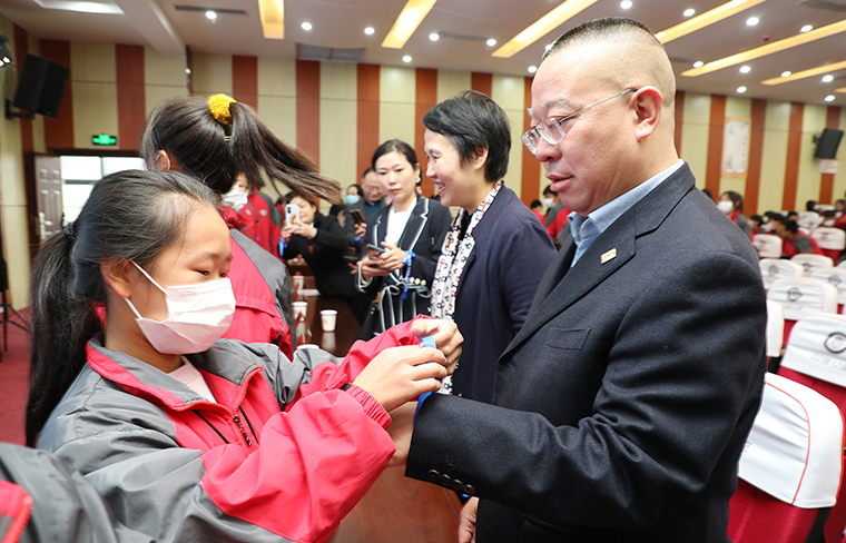在現(xiàn)場(chǎng)致公班學(xué)生代表感動(dòng)人心的分享發(fā)言后,中共安化縣委副書(shū)記、統(tǒng)戰(zhàn)部長(zhǎng)潘文劍講話(huà)。他高度評(píng)價(jià)了綠之韻集團(tuán)的愛(ài)心義舉,親切勉勵(lì)孩子們珍惜這來(lái)之不易的學(xué)習(xí)機(jī)會(huì)。他表示,未來(lái)五年,安化縣將大力實(shí)施“三高四新”戰(zhàn)略,立足新發(fā)展階段、貫徹新發(fā)展理念、構(gòu)建新發(fā)展格局,以全面推進(jìn)鄉(xiāng)村振興統(tǒng)領(lǐng)經(jīng)濟(jì)社會(huì)發(fā)展全局,建設(shè)開(kāi)放、創(chuàng)新、秀美、富饒、幸福的新安化,奮力譜寫(xiě)社會(huì)主義現(xiàn)代化安化山鄉(xiāng)巨變新篇章。一切發(fā)展和改變,關(guān)鍵都在人才。為此,縣委縣政府將繼續(xù)加大教育的投入,統(tǒng)籌普通教育和職業(yè)教育的發(fā)展,用好各類(lèi)愛(ài)心助學(xué)資金,改善辦學(xué)條件、加強(qiáng)教育管理,落實(shí)“雙減”工作,提升辦學(xué)水平,努力培養(yǎng)一大批適應(yīng)現(xiàn)代化需要的技術(shù)型技能人才。