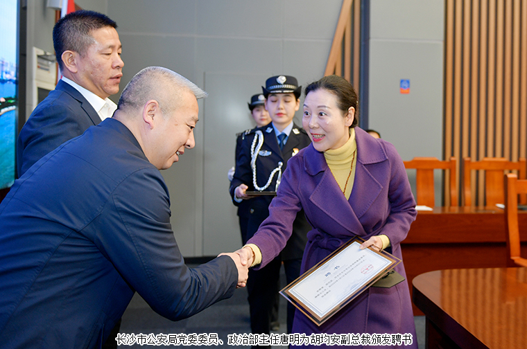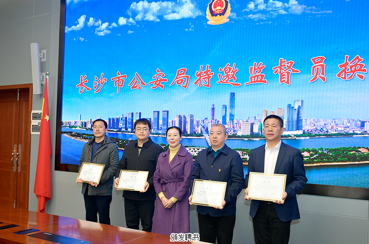 2022年1月12日上午,長沙市公安局特邀監(jiān)督員換屆會議在長沙召開。長沙市公安局機(jī)關(guān)黨委(紀(jì)委)主要負(fù)責(zé)人、22名長沙市公安局新一屆特邀監(jiān)督員參加會議。長沙市公安局黨委委員、政治部主任唐明為市局特邀監(jiān)督員頒發(fā)聘書并作講話;長沙市公安局機(jī)關(guān)紀(jì)委副書記謝勝宣讀《關(guān)于長沙市公安局特邀監(jiān)督員的聘任決定》。綠之韻集團(tuán)副總裁胡均安作為優(yōu)秀企業(yè)家代表,憑借多年對社會民生的關(guān)注、擔(dān)任社會職務(wù)積極履職的表現(xiàn),再次受聘為長沙市公安局特邀監(jiān)督員。