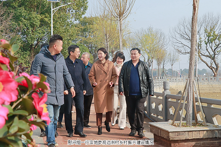 隨后,慰問組一行實(shí)地調(diào)研了邊洲村鄉(xiāng)村振興建設(shè)情況,這里正發(fā)生著翻天覆地的變化,集現(xiàn)代農(nóng)業(yè)、休閑旅游、田園居住于一體的“田園綜合體”建設(shè)項(xiàng)目已初見雛形。寬闊平整的道路,錯(cuò)落有致的民居,滿目皆綠,處處是景。