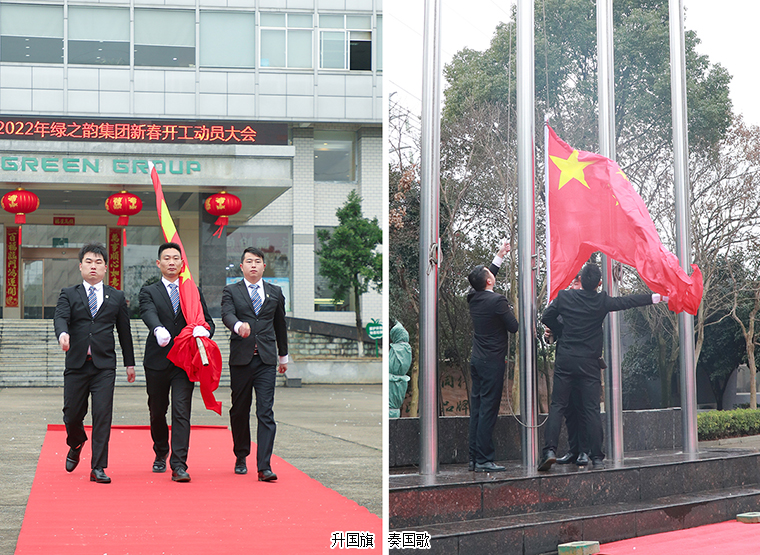 室外的低氣溫阻擋不了綠之韻人回“家”的熱情。上午9點(diǎn)18分,在綠之韻集團(tuán)前坪,全體員工統(tǒng)一著裝、整齊列隊(duì),隆重舉行莊嚴(yán)的升國(guó)旗儀式。伴隨著威武雄壯的國(guó)歌聲,鮮艷的五星紅旗冉冉升起,綠之韻家人們向國(guó)旗行注目禮,內(nèi)心激蕩著對(duì)偉大祖國(guó)的無(wú)比熱愛和崇敬。
