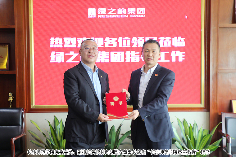 長沙師范學(xué)院黨委委員、副校長黃快林向胡國安董事長頒發(fā)聘書,正式聘請胡國安董事長為長沙師范學(xué)院客座教授。他表示,今天是一次感謝之行,是一次學(xué)習(xí)交流之行,也是一次工作拓新之行。對于綠之韻這樣熱心慈善、熱心教育事業(yè)發(fā)展的企業(yè),學(xué)校將做好企業(yè)的宣傳員。此次與綠之韻聯(lián)合共建“湖南省幼兒體質(zhì)促進研究中心”是一次非常難得的機會,將對幼兒教育與幼兒健康產(chǎn)生深遠的意義。未來,希望雙方能全面開展戰(zhàn)略合作,把“校企合作”做強做實做大,做成樣本工程。