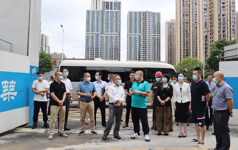 調(diào)研組一行在項目工作人員的引導(dǎo)下,查看了整個項目的施工進度及作業(yè)環(huán)境,了解綠之韻中心項目建設(shè)安全生產(chǎn)、綠色施工、衛(wèi)生防疫、食品安全等情況。