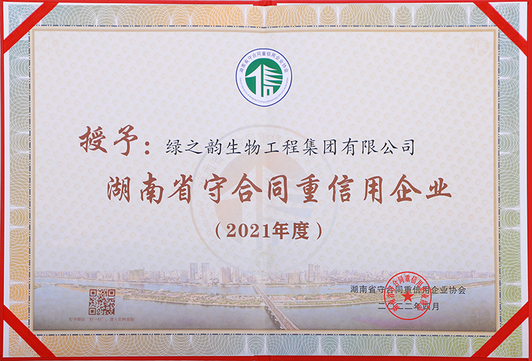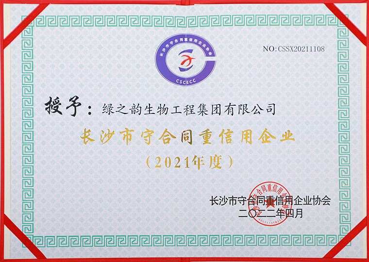 近日,湖南省守合同重信用企業(yè)協(xié)會、長沙市守合同重信用企業(yè)協(xié)會發(fā)布了2021年度湖南省、長沙市守合同重信用企業(yè)公示名單。綠之韻集團憑借完善的企業(yè)誠信建設(shè)體系與科學的企業(yè)管理水平,再次榮獲“湖南省守合同重信用企業(yè)”“長沙市守合同重信用企業(yè)”榮譽稱號。