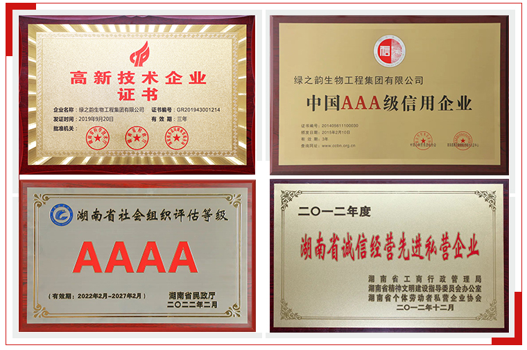 “和誠立信,競超興業(yè)”是綠之韻始終秉承的經(jīng)營宗旨。自創(chuàng)立以來,公司堅持以規(guī)范為根本、以責任為使命、以品質(zhì)為生命,立足健康可持續(xù)發(fā)展,維護消費者合法權(quán)益,傳遞行業(yè)正能量,不僅在企業(yè)品牌、戰(zhàn)略、管理、文化等方面實現(xiàn)了大幅度提升,而且還不遺余力地為行業(yè)培養(yǎng)了許多行業(yè)精英人才,為民族品牌的良性發(fā)展與崛起貢獻了自己的力量。公司連續(xù)十多年被授予“湖南省守合同重信用企業(yè)”,連續(xù)多年被授予納稅信用A級榮譽,先后獲評“國家高新技術(shù)企業(yè)”“中國企業(yè)誠信經(jīng)營示范單位”“中國AAA級信用企業(yè)”“湖南省誠信經(jīng)營先進私營企業(yè)”“等殊榮。