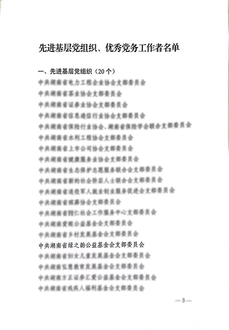 2022年7月1日,中共湖南省民政廳黨組、中共湖南省社會(huì)組織綜合委員會(huì)召開“七一”表彰大會(huì),表彰優(yōu)秀黨員、先進(jìn)基層黨組織和優(yōu)秀黨務(wù)工作者。湖南省民政廳黨組書記、廳長曹忠平,湖南省民政廳黨組成員、副廳長張自銀,湖南省民政廳副廳長、一級(jí)巡視員陳慈英,湖南省紀(jì)委派駐省民政廳紀(jì)檢組組長謝衛(wèi)國,湖南省民政廳副廳長蔣建華、游勁民等領(lǐng)導(dǎo)出席會(huì)議。綠之韻集團(tuán)工會(huì)主席、綠之韻公益基金會(huì)黨支部書記馮紅參加會(huì)議。會(huì)上,中共湖南省綠之韻公益基金會(huì)支部委員會(huì)榮獲“先進(jìn)基層黨組織”榮譽(yù)稱號(hào)。