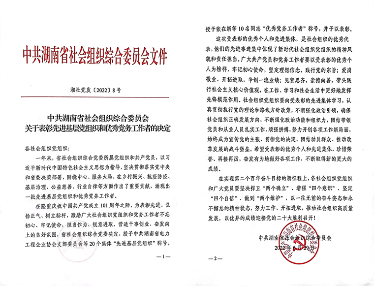 在隆重慶祝中國共產(chǎn)黨成立101周年之際,中共湖南省社會(huì)組織綜合委員會(huì)對20個(gè)優(yōu)秀先進(jìn)基層黨組織、10位優(yōu)秀黨務(wù)工作者、43名優(yōu)秀共產(chǎn)黨員進(jìn)行表彰。綠之韻公益基金會(huì)黨支部在省社會(huì)組織綜合黨委、綠之韻黨委領(lǐng)導(dǎo)下,以黨建促特色,以創(chuàng)新求發(fā)展,充分發(fā)揮黨組織的戰(zhàn)斗堡壘作用和黨員的先鋒模范作用。打造學(xué)習(xí)型黨支部,每月安排一次集體學(xué)習(xí)和研討交流,全年開展了20余次組織和主題學(xué)習(xí)工作;大膽探索“黨委+公益基金會(huì)+工會(huì)”社會(huì)扶貧新模式,開展關(guān)愛困難女性、綠之韻希望學(xué)校、兒童關(guān)愛、致公助學(xué)、鄉(xiāng)村振興建設(shè)等30個(gè)品牌公益項(xiàng)目,2021年,在鄉(xiāng)村振興專項(xiàng)工作中捐款200余萬元,連續(xù)獲得省市工商聯(lián)“抗擊新冠肺炎疫情先進(jìn)單位”榮譽(yù)。在此次“七一”表彰大會(huì)上被授予“先進(jìn)基層黨組織”榮譽(yù)稱號(hào)。