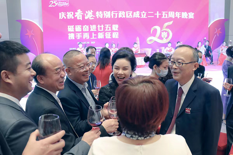 湖南省委常委、省人民政府常務(wù)副省長(zhǎng)李殿勛在致辭時(shí)表示,25年來,香港與祖國(guó)風(fēng)雨同舟,休戚與共。在中央政府的大力支持下,多次成功應(yīng)對(duì)各類危機(jī),保持著全球頂級(jí)的國(guó)際金融、國(guó)際航運(yùn)和貿(mào)易中心地位,開拓了持續(xù)開放繁榮的發(fā)展格局,取得了“一國(guó)兩制”實(shí)踐的巨大成功。香港與湖南深化合作,攜手共進(jìn),湖南的生鮮物資持續(xù)穩(wěn)定供應(yīng)香港,香港也成為湖南第一大外資來源地,第一大出口市 場(chǎng)和“走出去”聚集度最高的地區(qū)之一。湖南期待與香港繼續(xù)保持密切合作,推動(dòng)湘港合作向更廣領(lǐng)域、更深層次、更高水平邁進(jìn)。