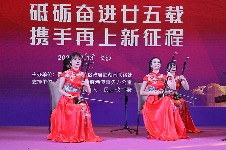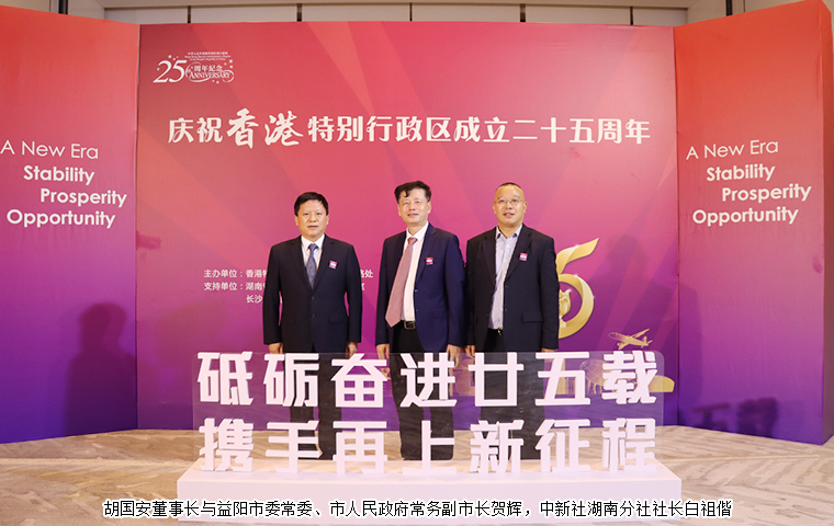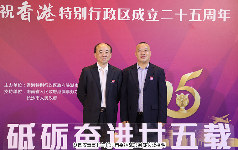 為慶祝香港特別行政區(qū)成立25周年,共同見證“一國(guó)兩制”實(shí)踐偉大成就,并展望湖南與香港合作新前景,香港特區(qū)政府駐湖南聯(lián)絡(luò)處、湖南省政府港澳辦、長(zhǎng)沙市政府于7月13日在長(zhǎng)沙舉辦香港特別行政區(qū)成立25周年慶祝晚宴。香港特別行政區(qū)行政長(zhǎng)官李家超視頻致辭。湖南省委常委、省人民政府常務(wù)副省長(zhǎng)李殿勛,香港特別行政區(qū)政府駐武漢經(jīng)濟(jì)貿(mào)易辦事處主任郭偉勛,湖南省人民政府外事辦公室主任、省人民政府港澳事務(wù)辦公室主任徐正憲,湖南省委統(tǒng)戰(zhàn)部副部長(zhǎng)、省社會(huì)主義學(xué)院黨組書記丁學(xué)新,長(zhǎng)沙市委常委、市委宣傳部部長(zhǎng)陳澎,香港特別行政區(qū)政府駐湖南聯(lián)絡(luò)處主任廖鳳嫻等領(lǐng)導(dǎo)出席活動(dòng)。湖南省政協(xié)委員,香港長(zhǎng)沙聯(lián)誼會(huì)會(huì)長(zhǎng),香港長(zhǎng)沙商會(huì)常務(wù)副會(huì)長(zhǎng),綠之韻集團(tuán)董事長(zhǎng)胡國(guó)安受邀參加活動(dòng)。