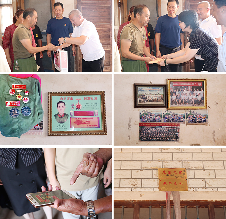 高加典,是瀏陽市北盛鎮(zhèn)邊洲村灘上組人。他不僅是一名越戰(zhàn)參戰(zhàn)老兵,家中更是有著三代從軍的光榮事跡,家中的門頭上高高懸掛著兩塊由湖南省人民政府退役軍人事務(wù)部頒發(fā)的“光榮之家”榮譽牌匾。據(jù)了解,高加典的叔公曾參加了石牛寨地方解放武裝斗爭,他的父親也作為一名軍人參加了地方武裝斗爭。而他本人則積極響應(yīng)了黨的號召,應(yīng)征入伍,進入中國人民解放軍五三六零六部隊,并參加了對越自衛(wèi)反擊戰(zhàn)。在部隊里,他曾三次受到部隊嘉獎,并榮獲一次三等功,胸前閃亮的徽章彰顯著他不平凡的過去。戰(zhàn)爭結(jié)束后,他帶病回鄉(xiāng),卻并不曾忘記自己作為一名軍人的職責,在一次民房失火的救援搶險過程中,他為了救出被困在火場中的群眾英勇負傷,大腿留下的那塊猙獰傷疤便是他的勛章。