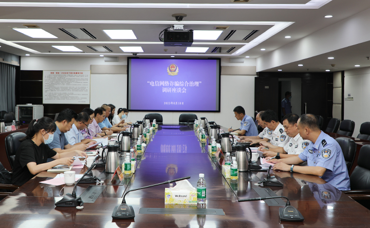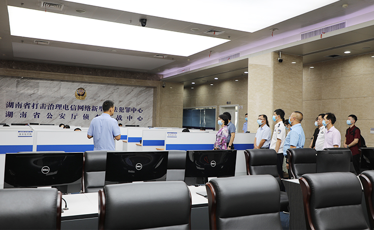 調研組一行首先參觀考察了湖南省反電詐中心,通過實地調研和聽取匯報等方式,詳細了解了近年來湖南省公安廳在打擊治理電信網絡詐騙犯罪領域的工作情況,并就“電信網絡詐騙綜合治理”召開了專題調研座談會。