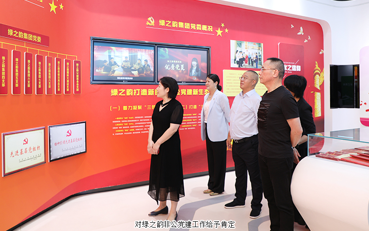 在黨建文化教育基地,綠之韻集團(tuán)黨委書(shū)記劉云就非公黨建情況向調(diào)研組一行作了詳細(xì)介紹。綠之韻始終將非公黨建工作置于發(fā)展戰(zhàn)略高度,自2006年成立黨支部,2013年獲批成立黨總支,2016年8月獲批成立黨委以來(lái),堅(jiān)持構(gòu)建以集團(tuán)黨組織為核心,以集團(tuán)工會(huì)、公益基金會(huì)為主體,注重紅色基因塑造的新時(shí)代非公黨建新生態(tài),實(shí)施“指導(dǎo)式”“責(zé)任式”“溫情式”管理,在全行業(yè)內(nèi)創(chuàng)建了第一家黨建文化教育基地,形成了具有綠之韻特色的非公黨建工作品牌。