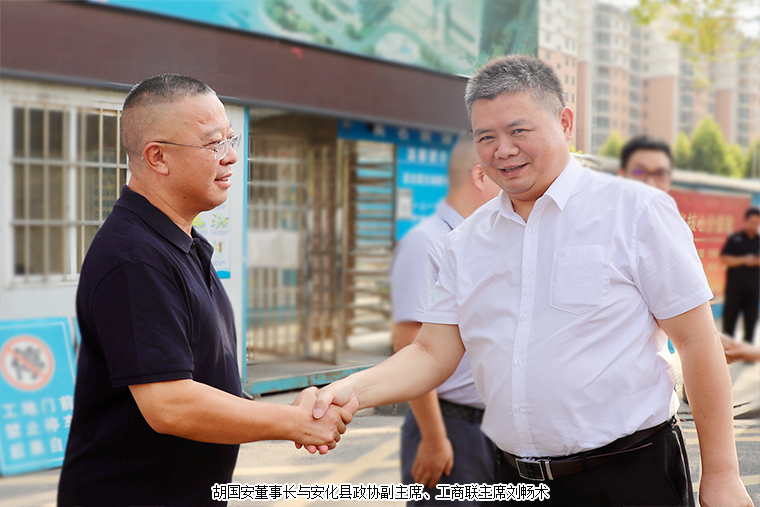 安化縣政協(xié)黨組書記、主席胡能華深入了解了綠之韻的生產(chǎn)發(fā)展情況,充分肯定了綠之韻中心工程項目建設(shè)工作。他表示,非常欣喜看到安化籍企業(yè)家創(chuàng)辦的企業(yè)在高質(zhì)量發(fā)展過程中不忘服務(wù)社會、回報桑梓,積極為社會經(jīng)濟(jì)發(fā)展作貢獻(xiàn),對胡國安董事長一直以來關(guān)心關(guān)注家鄉(xiāng)建設(shè)、積極獻(xiàn)計獻(xiàn)策為家鄉(xiāng)發(fā)展做出的積極貢獻(xiàn)表示感謝。未來,非常歡迎胡國安董事長與綠之韻集團(tuán)能繼續(xù)在家鄉(xiāng)安化投資興業(yè),為安化鄉(xiāng)村振興工作貢獻(xiàn)更多力量。