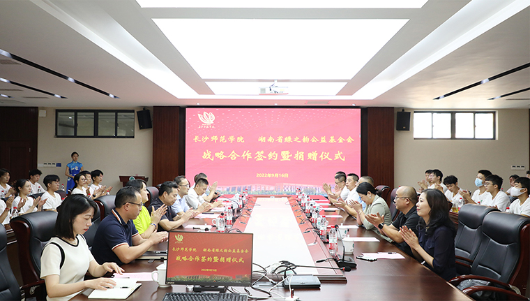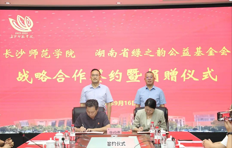 為進(jìn)一步推進(jìn)幼體融合、助力學(xué)前教育高質(zhì)量發(fā)展,2022年9月16日,長(zhǎng)沙師范學(xué)院與湖南省綠之韻公益基金會(huì)戰(zhàn)略合作簽約暨捐贈(zèng)儀式在長(zhǎng)沙師范學(xué)院舉行。湖南省政協(xié)委員胡國(guó)安通過(guò)綠之韻公益基金會(huì)捐資40萬(wàn)元與長(zhǎng)沙師范學(xué)院共建湖南省幼兒體質(zhì)健康促進(jìn)研究院。長(zhǎng)沙師范學(xué)院黨委副書(shū)記、校長(zhǎng)曹曉鮮,黨委委員、副校長(zhǎng)黃快林,黨委委員、副校長(zhǎng)徐慶軍,奧運(yùn)冠軍、體育運(yùn)動(dòng)委員會(huì)專職副主任龔智超,體育科學(xué)學(xué)院院長(zhǎng)陳捷,創(chuàng)新創(chuàng)業(yè)學(xué)院院長(zhǎng)張德啟,教務(wù)處副處長(zhǎng)陳亮,校友會(huì)副秘書(shū)長(zhǎng)李月;湖南省政協(xié)委員、長(zhǎng)沙師范學(xué)院客座教授、綠之韻集團(tuán)董事長(zhǎng)胡國(guó)安,湖南省女企業(yè)家協(xié)會(huì)常務(wù)副會(huì)長(zhǎng)、綠之韻集團(tuán)董事總裁、湖南省綠之韻公益基金會(huì)理事長(zhǎng)勞嘉,傲迪瑪汽車董事局主席、湖南省綠之韻公益基金會(huì)副會(huì)長(zhǎng)胡武安,湖南馬良數(shù)碼科技股份有限公司董事長(zhǎng)周益安,湖南湘體愛(ài)動(dòng)教育科技有限公司董事長(zhǎng)張亞球,湖南馬良數(shù)碼科技股份有限公司總經(jīng)理李祥龍參加活動(dòng)。