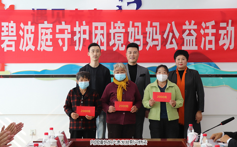 守護(hù)困境媽媽,給媽媽獻(xiàn)上100%的愛。2022年10月20日,綠之韻碧波庭守護(hù)困境媽媽公益活動(dòng)走進(jìn)青島崔家集鎮(zhèn)。綠之韻碧波庭公司通過綠之韻公益基金會(huì)向崔家集鎮(zhèn)捐贈(zèng)愛心款物價(jià)值10萬元,主要用于對(duì)有身患重疾、沒有勞動(dòng)能力、缺乏收入來源等情況的困境媽媽及其家庭進(jìn)行幫扶活動(dòng)。