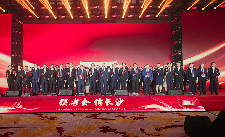 在黨的二十大勝利召開、長沙市工商聯(lián)成立七十周年、長沙“企業(yè)家日”到來之際,為深入學(xué)習(xí)貫徹黨的二十大精神和中央統(tǒng)戰(zhàn)工作會議精神,總結(jié)回顧市工商聯(lián)過去70載的工作成效以及全市民營經(jīng)濟(jì)發(fā)展的歷史經(jīng)驗(yàn),大力弘揚(yáng)企業(yè)家精神,2022年11月1日,長沙市工商聯(lián)深入學(xué)習(xí)貫徹黨的二十大精神暨慶祝成立70周年大會在長沙隆重舉行。