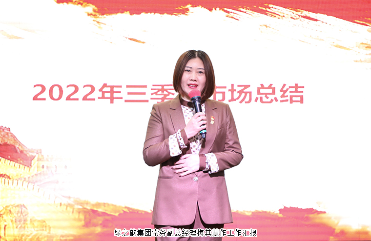 回望過去的奮斗路,大會首先通過視頻回顧了公司三季度獲得的重要成績。遙望未來的奮進路,在會上,綠之韻國際商學(xué)院常務(wù)副院長陳敏、綠之韻集團常務(wù)副總經(jīng)理梅其慧、綠之韻集團市場營銷中心總經(jīng)理戴三省分別回顧了過去三個月市場工作所取得的成就,也提出了下階段工作的目標及規(guī)劃,更是為大家加油打氣,要擼起袖子、全力以赴,在最后一個季度為2022年畫上一個完美的句號。