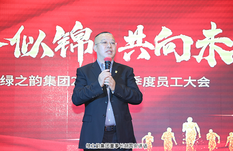 最后,在全場的期待及掌聲中,綠之韻集團董事長胡國安上臺作重要講話。他首先代表集團公司向獲得“五年服務(wù)英才獎”“十年服務(wù)忠誠獎”的獲獎員工表示熱烈祝賀,并向全體員工的辛勤付出致以誠摯的謝意。他表示,很多人覺得自己在平凡的崗位上非常普通,但是如果你把自己像一顆螺絲釘一樣永遠釘在那個崗位上,那就會成為問題的發(fā)現(xiàn)者和終結(jié)者。春耕夏長秋收冬藏,五年和十年受到嘉獎的同事都是因為不斷地努力和堅持,才在綠之韻這個舞臺收獲了成長,實現(xiàn)了人生價值,成為了同事們學(xué)習的榜樣、父母的驕傲和家族的榮耀。綠之韻是一個發(fā)展中的企業(yè)、成長型的企業(yè),同時也是一個學(xué)習型企業(yè),我們將始終堅持長期主義,人才的長期主義、產(chǎn)品的長期主義、文化的長期主義,讓企業(yè)和員工伙伴都能夠得到長足的發(fā)展。五年、十年在每一個人的人生長河中只是滄海一粟,但希望在綠之韻的成長經(jīng)歷能夠成為大家人生中最精彩的那一段旅程!綠之韻馬上將迎來二十周年,希望所有綠之韻人以高度的責任心和強烈的使命感,全力以赴去迎接挑戰(zhàn)。希望每一位家人,既有追趕太陽的目標,又有欣賞月亮情懷,讓我們始終一路相隨,精耕產(chǎn)品,把支部建在連上,深入市場一線,奮勇拼搏,同心同力開創(chuàng)新的輝煌!