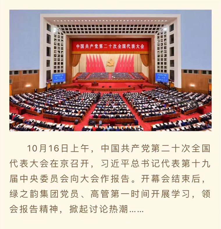 10月16日上午,中國(guó)共產(chǎn)黨第二十次全國(guó)代表大會(huì)在京召開(kāi),習(xí)近平總書(shū)記代表第十九屆中央委員會(huì)向大會(huì)作報(bào)告。開(kāi)幕會(huì)結(jié)束后,綠之韻集團(tuán)黨員、高管第一時(shí)間開(kāi)展學(xué)習(xí),領(lǐng)會(huì)報(bào)告精神,掀起討論熱潮 ……