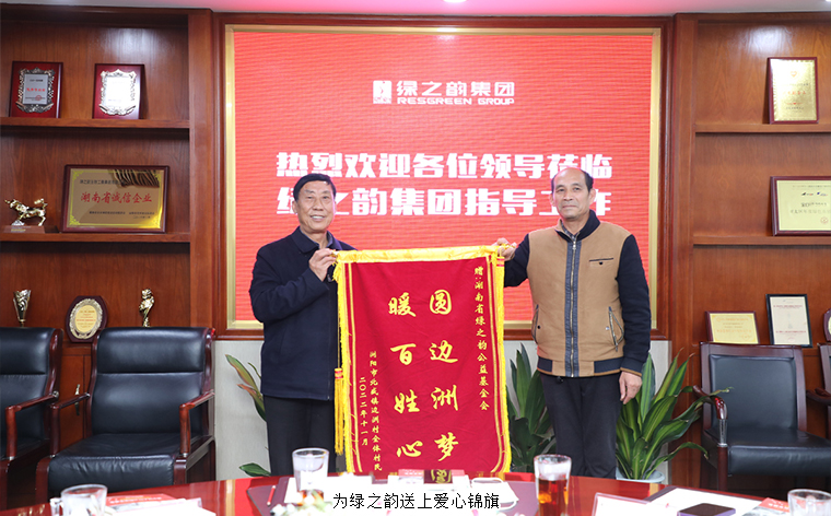 2022年11月23日,長沙市場監(jiān)督管理局駐瀏陽市北盛鎮(zhèn)邊洲村第一書記羅亞軍、邊洲村原村黨總支書記聶力武等一行蒞臨綠之韻集團(tuán),并送來愛心錦旗,表達(dá)對綠之韻支持北盛鎮(zhèn)邊洲村鄉(xiāng)村振興建設(shè)工作的感謝之情。綠之韻集團(tuán)董事、總裁勞嘉,工會主席兼辦公室行政總監(jiān)馮紅,黨委副書記許達(dá)仲,瀏陽市政協(xié)委員、綠之韻公益基金會秘書長蔣文等參加活動。
