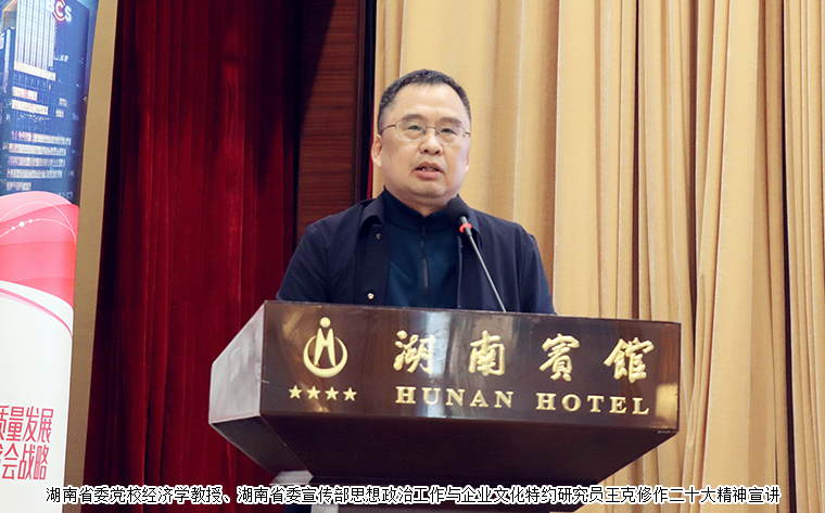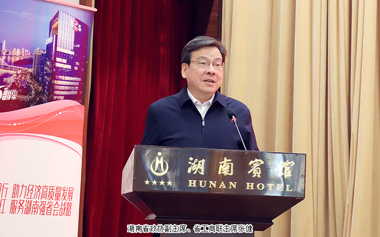 湖南省政協(xié)副主席、省工商聯(lián)主席張健講話。他首先代表湖南省工商聯(lián)向大會(huì)的召開表示熱烈的祝賀,向參會(huì)的各位嘉賓和企業(yè)家代表致以誠(chéng)摯的問候。習(xí)近平總書記在黨的二十大報(bào)告中指出“推進(jìn)文化自信自強(qiáng),鑄就社會(huì)主義文化新輝煌”。企業(yè)文化建設(shè)是企業(yè)可持續(xù)發(fā)展的內(nèi)在動(dòng)力,決定著企業(yè)的戰(zhàn)略方向、經(jīng)營(yíng)理念、管理水平和員工素質(zhì),決定著企業(yè)的核心競(jìng)爭(zhēng)力。要深入學(xué)習(xí)貫徹黨的二十大精神和習(xí)近平總書記的系列講話精神,大力弘揚(yáng)偉大建黨精神,加強(qiáng)政治引領(lǐng),凝聚智慧力量,堅(jiān)定文化自信,推動(dòng)企業(yè)文化建設(shè)工作品牌的打造,團(tuán)結(jié)引領(lǐng)廣大民營(yíng)經(jīng)濟(jì)人士,以優(yōu)質(zhì)高效的服務(wù)推動(dòng)民營(yíng)經(jīng)濟(jì)高質(zhì)量發(fā)展,全面落實(shí)“三高四新”的戰(zhàn)略定位和使命任務(wù),為全面建設(shè)富強(qiáng)民主文明和諧美麗的社會(huì)主義現(xiàn)代化強(qiáng)國(guó)貢獻(xiàn)我們民營(yíng)經(jīng)濟(jì)的力量。
