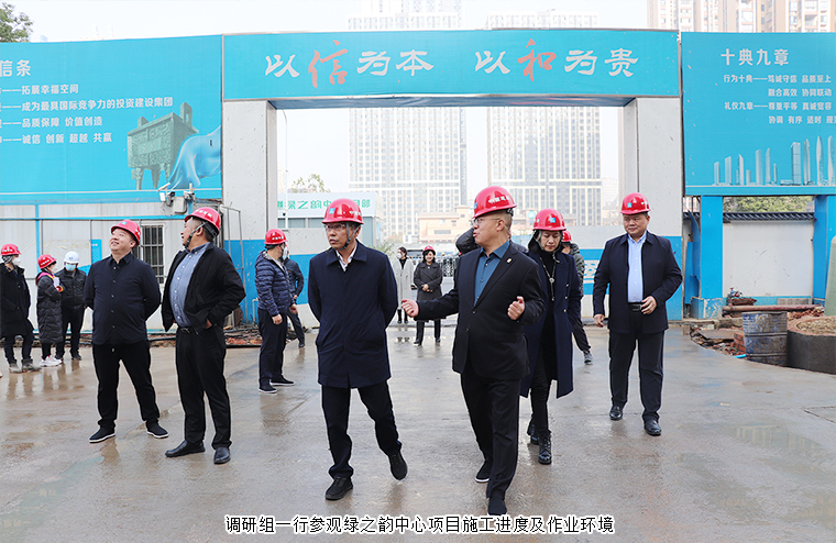 調(diào)研組一行在項目工作人員的引導(dǎo)下,查看了整個項目的施工進度及作業(yè)環(huán)境,了解綠之韻中心項目建設(shè)安全生產(chǎn)、綠色施工、未來發(fā)展等情況,并親切慰問項目工作人員春節(jié)返鄉(xiāng)、安置等情況。