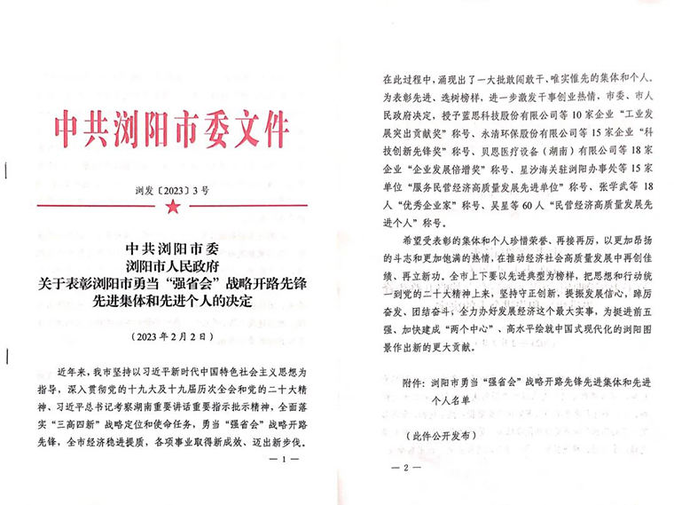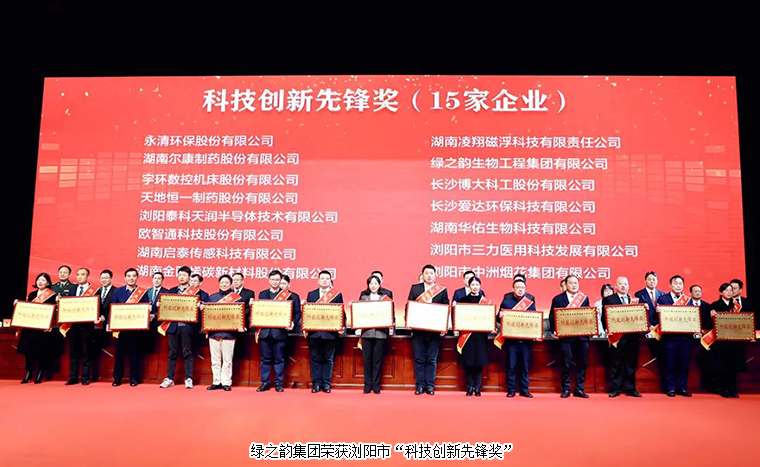 會上,中共瀏陽市委常委、常務(wù)副市長馮賽軍宣讀了由瀏陽市委市政府印發(fā)的《瀏陽市人民政府關(guān)于2022年度財政性資金獎勵政策兌現(xiàn)的通知》《中共瀏陽市委瀏陽市人民政府關(guān)于表彰瀏陽市勇當“強省會”戰(zhàn)略開路先鋒先進集體和先進個人的決定》,對近年來在瀏陽市深入貫徹黨的十九屆歷次全會及黨的二十大精神、全面落實“三高四新”戰(zhàn)略定位和使命任務(wù)、勇當強省會戰(zhàn)略開路先鋒、推動經(jīng)濟高質(zhì)量發(fā)展中涌現(xiàn)出的一大批敢闖敢干、唯實惟先先進單位和個人予以表彰獎勵。綠之韻集團憑借著在產(chǎn)品研發(fā)、科技創(chuàng)新方面的優(yōu)異表現(xiàn)榮獲瀏陽市“科技創(chuàng)新先鋒獎”。