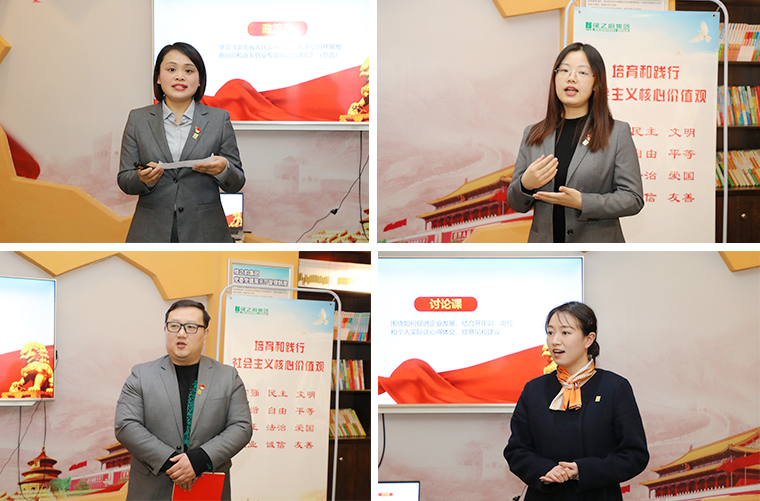 會(huì)議最后,綠之韻集團(tuán)黨委書記劉云講話。她首先對(duì)獲得“學(xué)習(xí)強(qiáng)國(guó)達(dá)人”稱號(hào)的優(yōu)秀黨員表示衷心的祝賀,希望獲獎(jiǎng)黨員新的一年繼續(xù)努力,再創(chuàng)佳績(jī)。她表示,今天黨員們通過圖文并茂的方式進(jìn)行了黨課學(xué)習(xí),并結(jié)合自身工作崗位作了分享,這樣的形式很好。希望黨員們能再接再厲,將每月的政治學(xué)習(xí)的形式和內(nèi)容變得更加豐富和生動(dòng),做到在學(xué)習(xí)中成長(zhǎng),在成長(zhǎng)中學(xué)習(xí)。隨后,劉云書記向在座黨員傳達(dá)了上周園區(qū)召開的黨務(wù)工作會(huì)議精神,2023年是全面貫徹落實(shí)黨的二十大精神的開局之年,作為一名黨員要將黨的二十大精神學(xué)深悟透學(xué)實(shí)。今年我們的黨建工作要注重思想引領(lǐng),緊抓理論學(xué)習(xí),促進(jìn)黨的二十大精神在企業(yè)走深走實(shí);要強(qiáng)化管理意識(shí),加強(qiáng)黨性錘煉,深化隊(duì)伍建設(shè),持續(xù)發(fā)揮戰(zhàn)斗堡壘和先鋒模范作用;要強(qiáng)化服務(wù)意識(shí),激發(fā)組織活力,堅(jiān)持以實(shí)為本,推動(dòng)黨建與企業(yè)發(fā)展雙贏雙促;強(qiáng)化爭(zhēng)先創(chuàng)優(yōu)意識(shí),堅(jiān)持先進(jìn)引領(lǐng),走在前干在前,以高質(zhì)量黨建為集團(tuán)二十周年增光添彩。