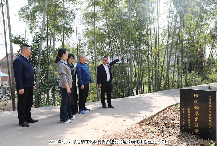 實施鄉(xiāng)村振興建設是黨和國家交給民營企業(yè)的一項重要任務。一直以來,綠之韻都把建設美麗鄉(xiāng)村與企業(yè)發(fā)展相結合。2022年,綠之韻通過湖南省慈善總會捐資200萬元專門用于鄉(xiāng)村振興項目。綠之韻集團黨委、公益基金會分別與瀏陽北盛鎮(zhèn)邊洲村、大瑤鎮(zhèn)楓林村、安化冷市鎮(zhèn)胡家村、邵陽羅家水村、永州勾藍瑤村、新化汝溪村等多個村委簽訂村企共建協(xié)議,并因地制宜,開展鄉(xiāng)村振興建設項目。其中,大瑤鎮(zhèn)楓林村就是綠之韻村企共建中的一站。綠之韻捐資10萬元用于楓林村道路硬化工程和提質改造項目,希望幫助楓林村的居民打開致富路、安心路、幸福路,創(chuàng)造更加美好的生活?;顒赢斕?,綠之韻集團副總裁胡均安帶領黨團成員特意前往楓林村中連至黃泥坳道路硬化工程所在地查看項目投入使用情況。