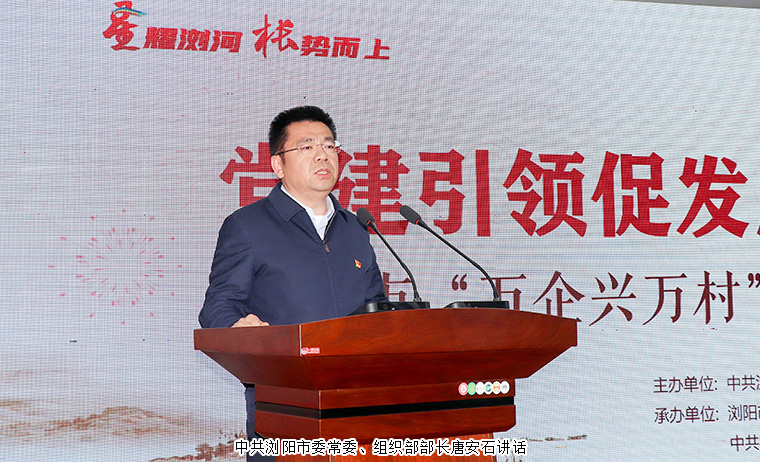 中共瀏陽市委常委、組織部部長唐安石講話。他向長期以來關(guān)心支持瀏陽鄉(xiāng)村振興的廣大企業(yè)家和社會各界人士表示衷心的感謝。他提出,一是要強化黨建引領(lǐng)。鄉(xiāng)鎮(zhèn)要當好全面推進鄉(xiāng)村振興的一線作戰(zhàn)部,做到黨委強、機制順、隊伍活。村支書要發(fā)揮領(lǐng)頭雁作用,帶領(lǐng)村兩委班子苦干實干,攻堅克難。駐村第一書記和工作隊要切實履職盡責,廣大農(nóng)村黨員要發(fā)揮先鋒模范作用,帶領(lǐng)群眾奮發(fā)圖強。民營企業(yè)黨組織要積極承擔社會責任,助力鄉(xiāng)村振興共同富裕,把黨的組織優(yōu)勢轉(zhuǎn)化為推動鄉(xiāng)村全面振興的強大動能。二是要抓好產(chǎn)業(yè)發(fā)展。萬企興萬村要取得實效,關(guān)鍵在產(chǎn)業(yè)。按照“一村一品”的思路幫扶,培育壯大特色優(yōu)勢產(chǎn)業(yè),打造精品產(chǎn)業(yè)。三是要做實企業(yè)服務,支持民營企業(yè)民營經(jīng)濟發(fā)展壯大,始終把民營企業(yè)和民營企業(yè)家當作自己人,為企業(yè)提供“誠心、用心、專心、精心、傾心”為代表的“五心”級服務,全力優(yōu)化營商環(huán)境,助推民營企業(yè)高質(zhì)量發(fā)展。