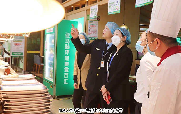 “存放在冰箱的食材是半成品嗎?需要用保鮮膜密封保存。”“海鮮產(chǎn)品從哪里采購(gòu)的,可以看下進(jìn)貨臺(tái)賬嗎?”“煮沸消毒用了哪個(gè)桶?這個(gè)消毒桶要專(zhuān)用才可以?!彪S后,檢查小組來(lái)到位于坡子街長(zhǎng)沙中心印象城內(nèi)的亞馬遜自助餐廳。活動(dòng)中,執(zhí)法人員圍繞從業(yè)人員健康管理和個(gè)人衛(wèi)生、原料進(jìn)貨查驗(yàn)、食品加工制作、餐飲具清洗消毒、后廚環(huán)境衛(wèi)生、是否存在餐飲浪費(fèi)等經(jīng)營(yíng)行為進(jìn)行檢查,并對(duì)不規(guī)范的行為給予耐心指導(dǎo)。