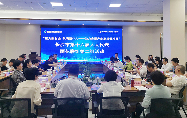 視察結(jié)束后,在湖南會展產(chǎn)業(yè)孵化平臺調(diào)研組一行進行了熱烈的交流和座談會。座談會由湖南中煙工業(yè)有限責任公司一級高級經(jīng)理劉興主持。長沙市人大代表、湖南省會議展覽業(yè)協(xié)會會長榮麗萍致歡迎詞,感謝代表們對長沙會展業(yè)發(fā)展的關(guān)心以及對長沙會展行業(yè)發(fā)展前景及現(xiàn)狀進行了闡述。座談會上,代表們圍繞會展產(chǎn)業(yè)發(fā)展、優(yōu)化營商環(huán)境、改善基礎設施、彰顯城市文化、打造城市產(chǎn)業(yè)名片等方面提出了富有針對性、操作性的意見建議。