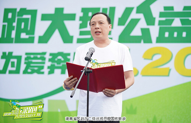啟動儀式上,湖南省民政廳二級巡視員廖國核致辭。他表示,綠跑活動旨在通過健康跑這種形式,弘揚積極向上的“運動+公益”理念,倡導(dǎo)全民健康生活方式,匯聚傳遞公益正能量,為困境中的同胞圓夢。感謝省慈善總會副會長單位綠之韻集團一直以來對湖南省公益慈善事業(yè)的關(guān)心和支持,這充分體現(xiàn)了綠之韻集團優(yōu)秀企業(yè)文化和社會責(zé)任擔(dān)當(dāng)。這次聯(lián)合綠之韻集團共同舉辦綠跑活動,目的就是激發(fā)向善正能量,凝聚社會公益心,讓愛的聲音傳播的更遠更響亮,為中國式現(xiàn)代化新湖南建設(shè)貢獻力量。