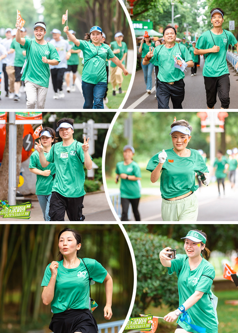 本次活動還設(shè)置了以綠之韻“五五規(guī)劃”為主題的歷程打卡點。沿洲賽道以源啟、蓄勢、立名、勃發(fā)、致遠五個歷程設(shè)置打卡點,搭配賽道上的腳印地貼。參賽選手沿賽道奔跑,一起共同回顧綠之韻20年的發(fā)展歷程。回憶會發(fā)光,那一定是時光留給綠之韻人的璀璨足跡。