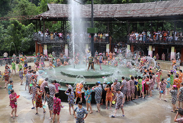 佛吉水舞是泰國最大的潑水狂歡主題活動(dòng)旅游景區(qū),綠之韻九臺(tái)豪華旅游大巴載著300名綠之韻營銷精英浩浩蕩蕩包場佛吉水舞當(dāng)天的潑水節(jié)主題活動(dòng)。綠之韻家人在這里體驗(yàn)宋干文化,參加潑水狂歡,拜佛、浴佛、祈福、觀賞泰國的傳統(tǒng)舞蹈,感受泰國潑水節(jié)帶來的開心和快樂。