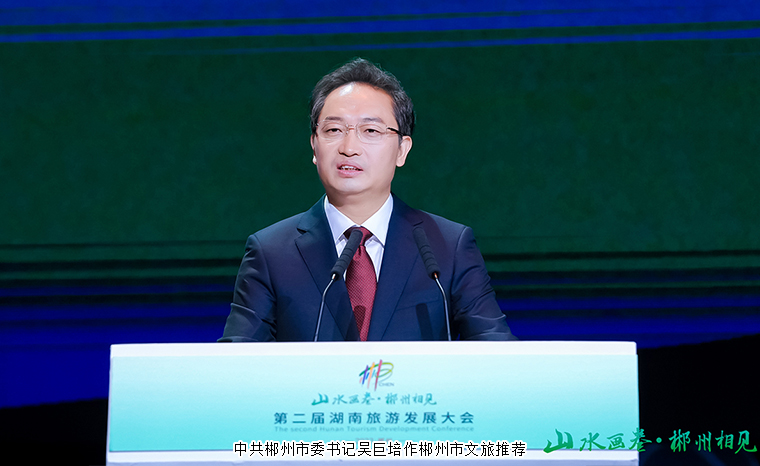 大會伊始,中共郴州市委書記吳巨培致歡迎詞并作郴州市文旅推薦。隨后,廣東省商務廳黨組書記、廳長張勁松講話。他表示,湖南和廣東在國家發(fā)展大局中都具有重要地位。廣東和湖南地緣相近,經濟相融,兩地要加強合作,互相支持,潛力巨大。山水畫卷,郴州相見。我們眺望“芙蓉國里盡朝暉”的瀟湘大地,品讀“萬水千山總是情”的郴州畫卷。山鄉(xiāng)似水,林中之意,展示給我們的不僅僅是山水之美,還有人文之美,更是心靈之美。今年9月,第二屆湖南旅發(fā)大會將在郴州舉辦,今天我們在這里相會,也是從這里出發(fā),向著天下第十八福地郴州去度過一段難忘的幸福時光。