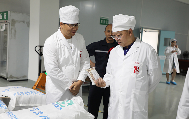 隨后,考察團(tuán)相繼走訪參觀了銀鴻農(nóng)業(yè)有限公司及經(jīng)開區(qū)鵲坪片區(qū)。通過實(shí)地察看、聽取介紹等方式,詳細(xì)了解了農(nóng)業(yè)生產(chǎn)經(jīng)營情況及黃精產(chǎn)業(yè)新區(qū)開發(fā)建設(shè)情況,并圍繞如何培育壯大中醫(yī)藥產(chǎn)業(yè)與企業(yè)負(fù)責(zé)人進(jìn)行交流,探討黃精產(chǎn)品未來加工方向及加工技術(shù)的突破。在最后一站,考察組一行來到博瑞中藥飲片有限公司,分別查看了公司中藥材原料倉庫、中藥飲片生產(chǎn)車間、成品倉庫等功能區(qū),聽取了公司相關(guān)負(fù)責(zé)人就中藥材飲片生產(chǎn)工藝流程的詳細(xì)介紹。據(jù)了解,湖南博瑞中藥飲片有限公司是益陽市僅有的2家中藥飲片生產(chǎn)加工企業(yè)之一。公司于2017年取得GMP證書,備案品種300多個(gè),除毒性飲片,其他常用品種均有,現(xiàn)與湖南省中醫(yī)藥研究院合作開發(fā)黃精免疫力產(chǎn)品,黃精精深加工車間也正在建設(shè)中。