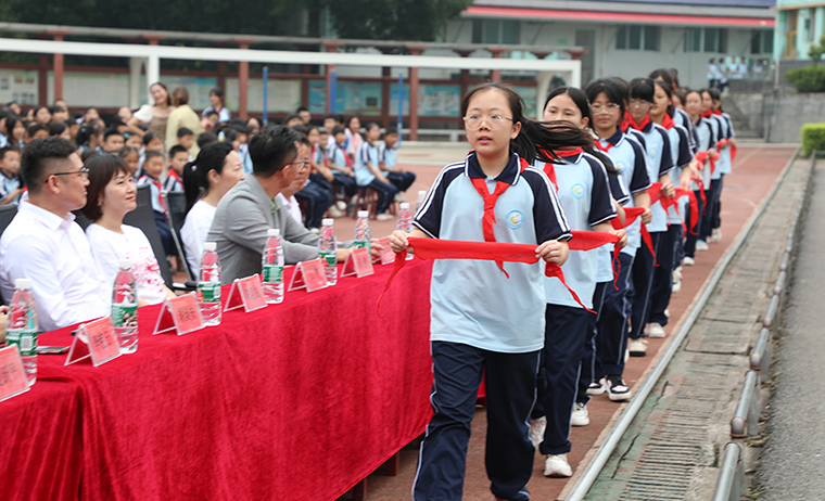 儀式開始前,領(lǐng)導(dǎo)嘉賓實(shí)地參觀了學(xué)?;A(chǔ)設(shè)施建設(shè)及辦學(xué)條件,3名不同年級的學(xué)生代表作為小小講解員,從學(xué)校文化長廊到校史長廊條理清晰地為嘉賓們講述大橋?qū)W校辦學(xué)歷史和辦學(xué)特色?;顒?dòng)伊始,少先隊(duì)員代表為到場嘉賓佩戴紅領(lǐng)巾,行隊(duì)禮,用最質(zhì)樸的行動(dòng)向所有愛心人士表達(dá)最真摯的感謝。