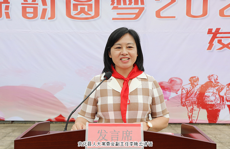 活動(dòng)最后,安化縣人大常委會副主任李艷云講話。她首先代表安化縣委、縣政府向胡國安董事長及公益團(tuán)隊(duì)表示崇高的敬意和衷心的感謝。她表示,捐資助學(xué)、尊師重教是社會的偉統(tǒng)美德。胡國安董事長作為從安化走出去的優(yōu)秀知名企業(yè)家代表,是慈善大愛的楷模。長期以來情系家鄉(xiāng),在愛心奉獻(xiàn)、回報(bào)桑梓的公益道路上一直不遺余力、竭盡所能,從建橋修路、精準(zhǔn)扶貧到脫貧攻堅(jiān),從產(chǎn)業(yè)幫扶、愛心助學(xué)到鄉(xiāng)村振興等無不體現(xiàn)了一位企業(yè)家高度的社會責(zé)任感和使命感。此次“綠韻圓夢獎(jiǎng)教獎(jiǎng)學(xué)金”的頒發(fā),也必將激發(fā)全體教師更大的工作熱情,更好地授業(yè)解惑,愛崗敬業(yè),教書育人;激勵(lì)全體學(xué)生更加努力拼搏,立志成才,奮發(fā)向上。必將影響和帶動(dòng)社會各界來關(guān)注、支持家鄉(xiāng)的教育工作,關(guān)注、支持家鄉(xiāng)的發(fā)展和建設(shè)。她希望,同學(xué)們繼續(xù)保持品學(xué)兼優(yōu)的品行,樹立遠(yuǎn)大理想,刻苦學(xué)習(xí),努力奮斗;常懷感恩之心去學(xué)習(xí)和工作,常念感激之情去做事和做人,牢記綠之韻集團(tuán)、社會、國家的教育和幫助,用實(shí)際行動(dòng)去回饋社會、感恩社會;希望“綠韻圓夢”獎(jiǎng)教獎(jiǎng)學(xué)金規(guī)范管理,科學(xué)運(yùn)作,讓大橋?qū)W校更多優(yōu)秀的教師和學(xué)生得到嘉獎(jiǎng),得到鼓勵(lì),最大限度地發(fā)揮獎(jiǎng)教獎(jiǎng)學(xué)的效應(yīng)。她呼吁,希望有更多的社會愛心人士像胡國安董事長這樣,以實(shí)際行動(dòng)關(guān)心支持教育事業(yè)的發(fā)展,關(guān)愛激勵(lì)青少年的成長。
