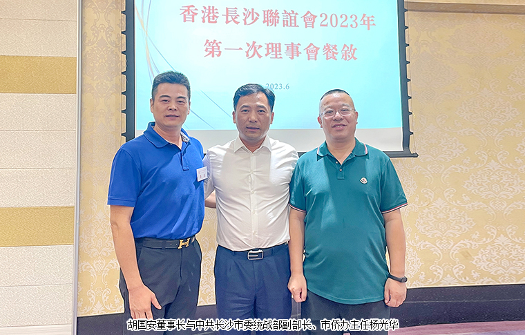 為進(jìn)一步發(fā)揮聯(lián)誼會(huì)人才薈聚、智力密集、廣泛團(tuán)結(jié)的優(yōu)勢(shì),密切聯(lián)誼理事會(huì)成員和香港社會(huì)各界之間的聯(lián)系,6月25日,香港長(zhǎng)沙聯(lián)誼會(huì)2023年度第一次全體理事會(huì)議在深圳召開。中共長(zhǎng)沙市委統(tǒng)戰(zhàn)部副部長(zhǎng)、市僑辦主任楊光華,市委統(tǒng)戰(zhàn)部港澳臺(tái)處(僑務(wù)處)處長(zhǎng)趙敏,市委統(tǒng)戰(zhàn)部港澳臺(tái)處(僑務(wù)處)二級(jí)主任科員王華銘等領(lǐng)導(dǎo)出席活動(dòng)。中國國際商會(huì)湖南商會(huì)副會(huì)長(zhǎng)、香港中華教育基金榮譽(yù)主席、長(zhǎng)沙市海外聯(lián)誼會(huì)副會(huì)長(zhǎng)、香港長(zhǎng)沙商會(huì)常務(wù)副會(huì)長(zhǎng)、綠之韻集團(tuán)董事長(zhǎng)胡國安參加活動(dòng),并當(dāng)選為香港長(zhǎng)沙聯(lián)誼會(huì)會(huì)長(zhǎng)。