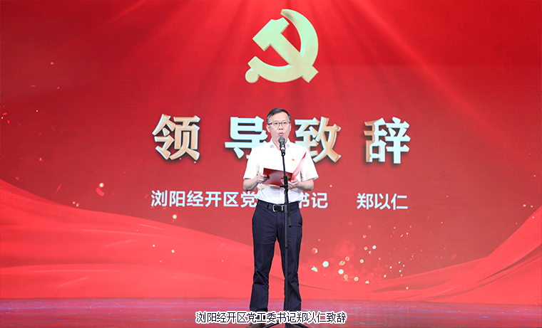 大會(huì)伊始,瀏陽(yáng)經(jīng)開(kāi)區(qū)黨工委書(shū)記鄭以仁致辭。他表示,在中國(guó)共產(chǎn)黨誕辰102周年之際,我們?cè)谶@里隆重聚會(huì)共同慶祝黨的生日,大力表彰在園區(qū)高質(zhì)量發(fā)展進(jìn)程中涌現(xiàn)出來(lái)的先進(jìn)集體和先進(jìn)個(gè)人,以先進(jìn)的事跡感染人、吸引人,以崇高的精神激勵(lì)人、鼓舞人,進(jìn)一步激發(fā)園區(qū)各級(jí)黨組織和廣大黨員干部人員見(jiàn)賢思齊、創(chuàng)先爭(zhēng)優(yōu),著力營(yíng)造學(xué)習(xí)先進(jìn)、崇尚先進(jìn)、爭(zhēng)當(dāng)先進(jìn)的良好氛圍。他代表黨工委向今天受到表彰的組織和個(gè)人表示熱烈的祝賀,向奮斗在各條戰(zhàn)線上的廣大黨員同志致以崇高的敬意和節(jié)日的問(wèn)候。2023年是全面貫徹落實(shí)黨的二十大精神的開(kāi)局之年,也是瀏陽(yáng)經(jīng)開(kāi)區(qū)高質(zhì)量發(fā)展、金陽(yáng)新城建設(shè)的跨越之年。各級(jí)黨組織和廣大黨員要把加強(qiáng)黨的全面領(lǐng)導(dǎo)作為行動(dòng)指南,凝心聚力、實(shí)干擔(dān)當(dāng)、勇建新功。要在旗幟鮮明講政治上做示范,成為絕對(duì)忠貞的踐行者;要在強(qiáng)化組織建堡壘上下功夫,成為紅色引擎的助推器;要在錘煉打磨真本領(lǐng)上當(dāng)表率,成為攻堅(jiān)克難的帶頭人。他希望,黨員同志能高舉習(xí)近平新時(shí)代中國(guó)特色社會(huì)主義思想的偉大旗幟,不斷推動(dòng)黨建工作再上新臺(tái)階,以高質(zhì)量黨建賦能高質(zhì)量發(fā)展,為加快建設(shè)具有核心競(jìng)爭(zhēng)力的現(xiàn)代化產(chǎn)業(yè)園區(qū)與努力奮斗。