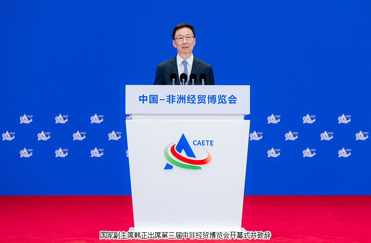 國(guó)家副主席韓正表示,設(shè)立中國(guó)-非洲經(jīng)貿(mào)博覽會(huì),是習(xí)近平主席親自批準(zhǔn)的重大對(duì)非合作舉措。2013年3月,習(xí)主席出訪(fǎng)非洲時(shí),首次提出真實(shí)親誠(chéng)對(duì)非政策理念和正確義利觀(guān)。十年來(lái),無(wú)論國(guó)際風(fēng)云如何變幻,中非始終真誠(chéng)友好、團(tuán)結(jié)合作,高層交往更加密切,合作規(guī)模不斷擴(kuò)大,合作領(lǐng)域持續(xù)拓展,結(jié)成休戚與共的命運(yùn)共同體和合作共贏的利益共同體,取得了豐碩成果,造福了中非廣大人民。他指出,當(dāng)今世界,多重挑戰(zhàn)和危機(jī)交織疊加,發(fā)展鴻溝不斷拉大。中方愿以中國(guó)式現(xiàn)代化和中國(guó)高質(zhì)量發(fā)展為非方提供新機(jī)遇,推動(dòng)中非務(wù)實(shí)合作走深走實(shí)。中方堅(jiān)定支持非洲走獨(dú)立自主的發(fā)展道路,將深入推進(jìn)中非共建“一帶一路”合作,同非洲國(guó)家持續(xù)深化戰(zhàn)略對(duì)接、加強(qiáng)產(chǎn)業(yè)鏈供應(yīng)鏈合作、著力提升聯(lián)通水平、共同聚焦可持續(xù)發(fā)展、堅(jiān)定推進(jìn)開(kāi)放發(fā)展,推動(dòng)構(gòu)建更加緊密的中非命運(yùn)共同體。他表示,中非合作不斷向全方位、多層次、高質(zhì)量發(fā)展,在南南合作和國(guó)際對(duì)非合作中發(fā)揮著重要引領(lǐng)作用,為構(gòu)建新型國(guó)際關(guān)系樹(shù)立了典范。本屆博覽會(huì)將為中非雙方打造對(duì)接交流、探討合作的良好平臺(tái)。歡迎中非各界積極參與博覽會(huì)活動(dòng),共同譜寫(xiě)中非經(jīng)貿(mào)合作高質(zhì)量發(fā)展新篇章,共享新時(shí)代繁榮發(fā)展新未來(lái)。
