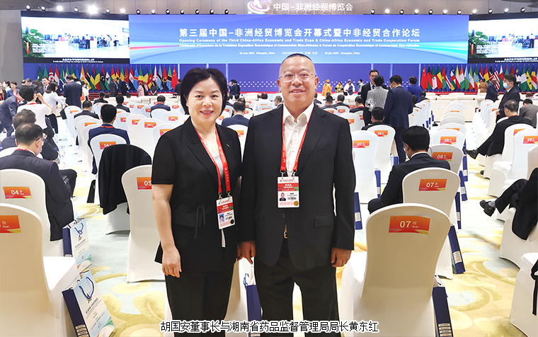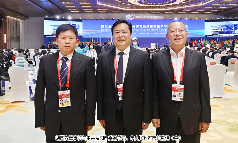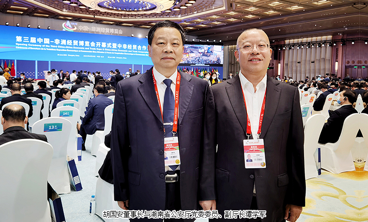 2023年6月29日,由中華人民共和國(guó)商務(wù)部與湖南省人民政府共同主辦的第三屆中國(guó)-非洲經(jīng)貿(mào)博覽會(huì)在長(zhǎng)沙隆重開(kāi)幕。國(guó)家副主席韓正出席開(kāi)幕式并致辭。馬拉維總統(tǒng)查克維拉、坦桑尼亞桑給巴爾總統(tǒng)姆維尼、非洲大陸自貿(mào)區(qū)秘書(shū)長(zhǎng)梅內(nèi),中共湖南省委書(shū)記沈曉明,省委副書(shū)記、省長(zhǎng)毛偉明,全國(guó)婦聯(lián)副主席、書(shū)記處第一書(shū)記黃曉薇,省政協(xié)主席毛萬(wàn)春等領(lǐng)導(dǎo)出席開(kāi)幕式。長(zhǎng)沙市人大代表、中國(guó)國(guó)際商會(huì)湖南商會(huì)副會(huì)長(zhǎng)、湖南省慈善總會(huì)副會(huì)長(zhǎng)、綠之韻集團(tuán)董事長(zhǎng)胡國(guó)安受邀參加開(kāi)幕式,與來(lái)自68個(gè)國(guó)家和地區(qū)的1000多名各界代表匯聚一堂,共同探索更多新技術(shù)、新產(chǎn)業(yè)、新業(yè)態(tài)、新模式的國(guó)際合作。