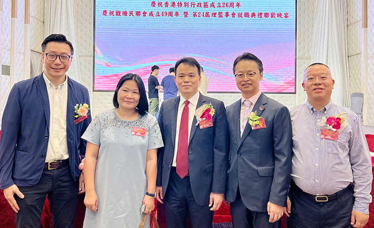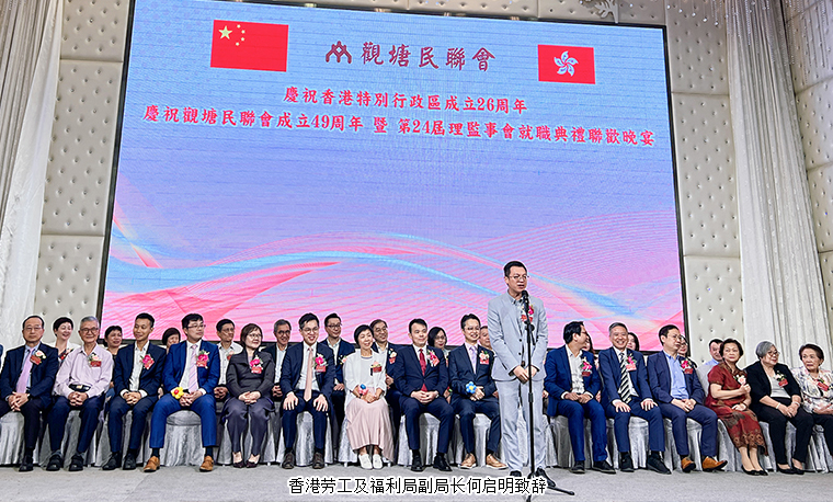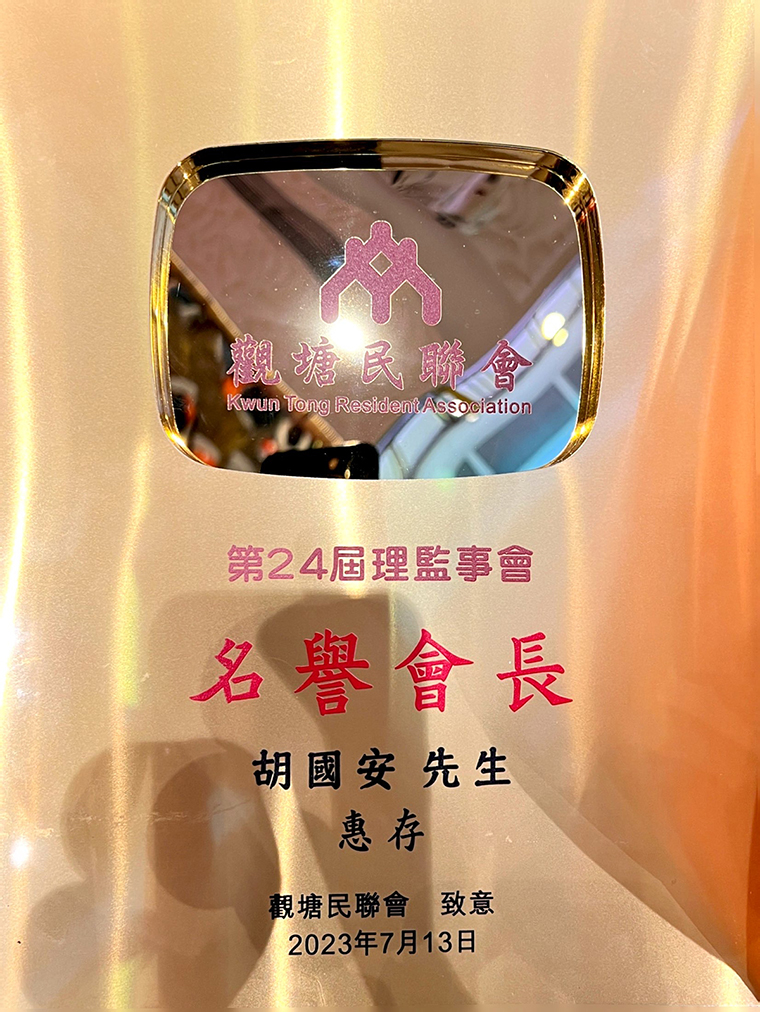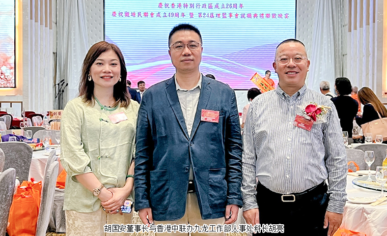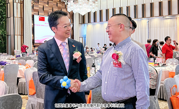 為慶祝香港特別行政區(qū)成立26 周年暨觀塘民聯(lián)會(huì)成立 49 周年,2023年7月13日,香港觀塘民聯(lián)會(huì)舉行第 24 屆理監(jiān)事會(huì)就職典禮聯(lián)歡晚宴。香港中聯(lián)辦九龍工作部一級(jí)巡視員、副部長(zhǎng)祝小東,香港勞工及福利局副局長(zhǎng)何啟明,香港民政事務(wù)總署觀塘民政事務(wù)專(zhuān)員林兆康太平紳士,香港社會(huì)福利署觀塘福利專(zhuān)員林小娟,香港觀塘區(qū)議會(huì)主席柯創(chuàng)盛等領(lǐng)導(dǎo)嘉賓出席活動(dòng)。香港觀塘民聯(lián)會(huì)理事長(zhǎng)洪錦鉉帶領(lǐng)理監(jiān)事會(huì)成員、會(huì)長(zhǎng)、副會(huì)長(zhǎng)代表等參加活動(dòng)。長(zhǎng)沙市海外聯(lián)誼會(huì)副會(huì)長(zhǎng)、香港中華教育基金榮譽(yù)主席、香港長(zhǎng)沙聯(lián)誼會(huì)會(huì)長(zhǎng)、第十二屆湖南省政協(xié)委員、綠之韻集團(tuán)董事長(zhǎng)胡國(guó)安參加活動(dòng),并受聘為香港觀塘民聯(lián)會(huì)第二十四屆理監(jiān)事會(huì)名譽(yù)會(huì)長(zhǎng)。