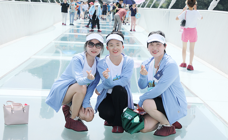 旅途第一站,綠之韻家人們來到張家界大峽谷景區(qū),這里的網(wǎng)紅打卡地——張家界大峽谷玻璃橋(全球第一座玻璃橋),每年吸引了無數(shù)人來游覽,這是一座景觀玻璃橋梁,兼景區(qū)行人通行、蹦極、游覽、溜索和T臺等功能。是世界最高、跨度最長的玻璃橋,大橋建在大峽谷兩側(cè)的峰頂上,橫跨大峽谷。在這里,觀蝴蝶泉瀑布、天仙水瀑布和竹仙泉,翠潭攬瀑;在一線天觀天梯棧道、石上森林和石壁裂縫;探怪謎洞,探索佛手遮天和爛船巖千古流傳的未解之謎?!罢驹诓A蛏峡创髰{谷實(shí)屬壯觀,感嘆中國的大好河山如此多嬌?!薄安A蚴且粋€(gè)偉大的建筑,走在橋上有一種飛翔的感覺,值得去看看。”綠之韻精英們游覽其中樂趣無窮,穿梭在大自然的奇觀里,稱贊、驚呼、拍照,流連忘返。沒有彼此的信任,就無法感受前所未有的快樂,往往站在最高處才能看見最美的風(fēng)景,此刻團(tuán)隊(duì)的力量也是最美的心房,這一刻一切都是如此的美好。