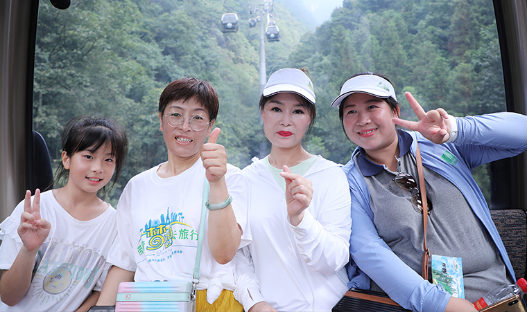 旅程最后兩天,綠之韻家人們來到了被稱為神秘的“潘多拉世界”袁家界景區(qū)及以峰稱奇、以谷顯幽、以林見秀的張家界國家森林公園。在袁家界最著名的景點(diǎn)是電影《阿凡達(dá)》中的懸浮山“哈利路亞山”的取景地——乾坤柱。一進(jìn)入景區(qū),矗立在綠之韻家人們面前的就是萬頃峰林怪石嶙峋,層巒疊嶂危峰兀立,仿佛是天地間有人豪氣萬丈地?fù)]劍篆刻而立,又仿佛有人精雕細(xì)琢而成。景區(qū)內(nèi)風(fēng)光旖旎,尤以云海、石濤、冬雪、霞日最為壯觀。隨后,大家乘坐有“天下第一梯”之稱的——百龍?zhí)焯?,山峰隨著電梯的飛速上升,到達(dá)頂端的風(fēng)景奇異,驚喜連連,頗有一覽眾山小的雄偉。一路上,大家全程心情愉悅,歡笑不斷,紛紛用手機(jī)將美好定格,留下一張張美麗的倩影。