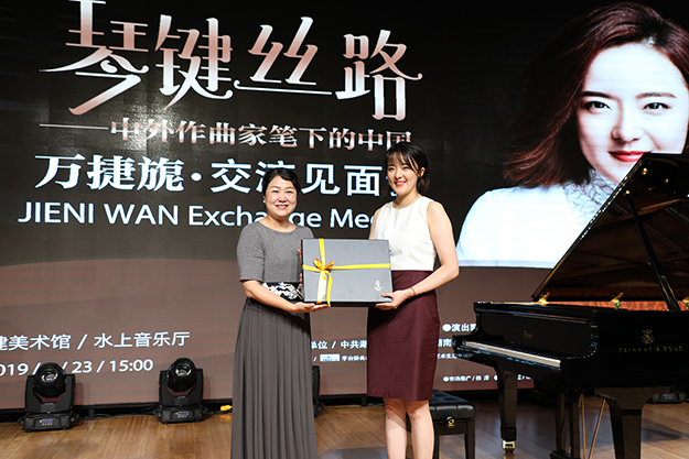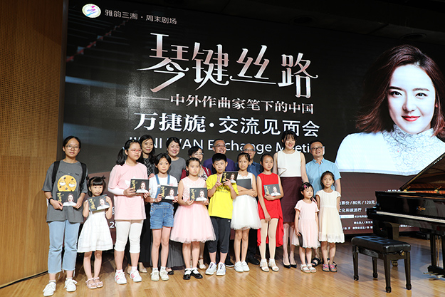 湖南省政協(xié)委員、綠之韻集團董事長胡國安,綠之韻集團董事總裁、湖南省綠之韻公益基金會理事長勞嘉現(xiàn)場向來自國家級貧困縣桑植卻勤學好問的陳樂,以及懷抱“希望生活一直都有音樂陪伴”夢想的長沙琴友代表唐嘉萱、尹楚宜,贈送了將于24日舉行的“綠之韻之夜·萬捷旎鋼琴獨奏音樂會”門票和紀念品,并與青年鋼琴演奏家萬捷旎互贈了紀念禮品。