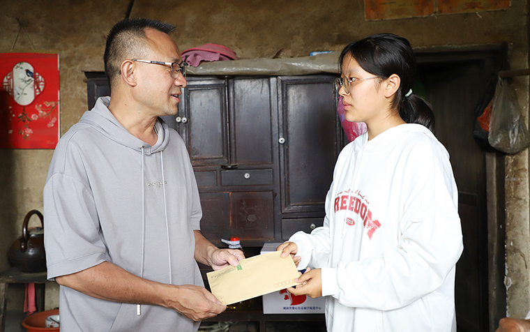 母親身體不好,主要在租房照顧兩姐妹,偶爾做點(diǎn)零工。全家收入靠父親外出務(wù)工賺取。今年高考,姐妹倆憑著努力和默契,以相近的分?jǐn)?shù)考上了同個(gè)大學(xué)。因?yàn)榧依镉薪n立卡脫貧戶檔案,學(xué)校給姐妹倆免了學(xué)費(fèi),但是每個(gè)學(xué)期2000多一人的學(xué)雜費(fèi)和到城市里求學(xué)的生活費(fèi)都讓這個(gè)家庭犯了難。彭銘總裁帶著綠之韻愛心志愿者的出現(xiàn),仿若給整個(gè)家庭捉襟見肘的困境中打開了一道希望的口子,照亮了她們的求學(xué)之路。彭總鼓勵(lì)雙胞胎姐妹,現(xiàn)在的你們羽翼尚未豐滿,還沒有能力改變現(xiàn)狀,但只要你們一直堅(jiān)持,努力學(xué)習(xí),未來一定能讓父母過上好日子。